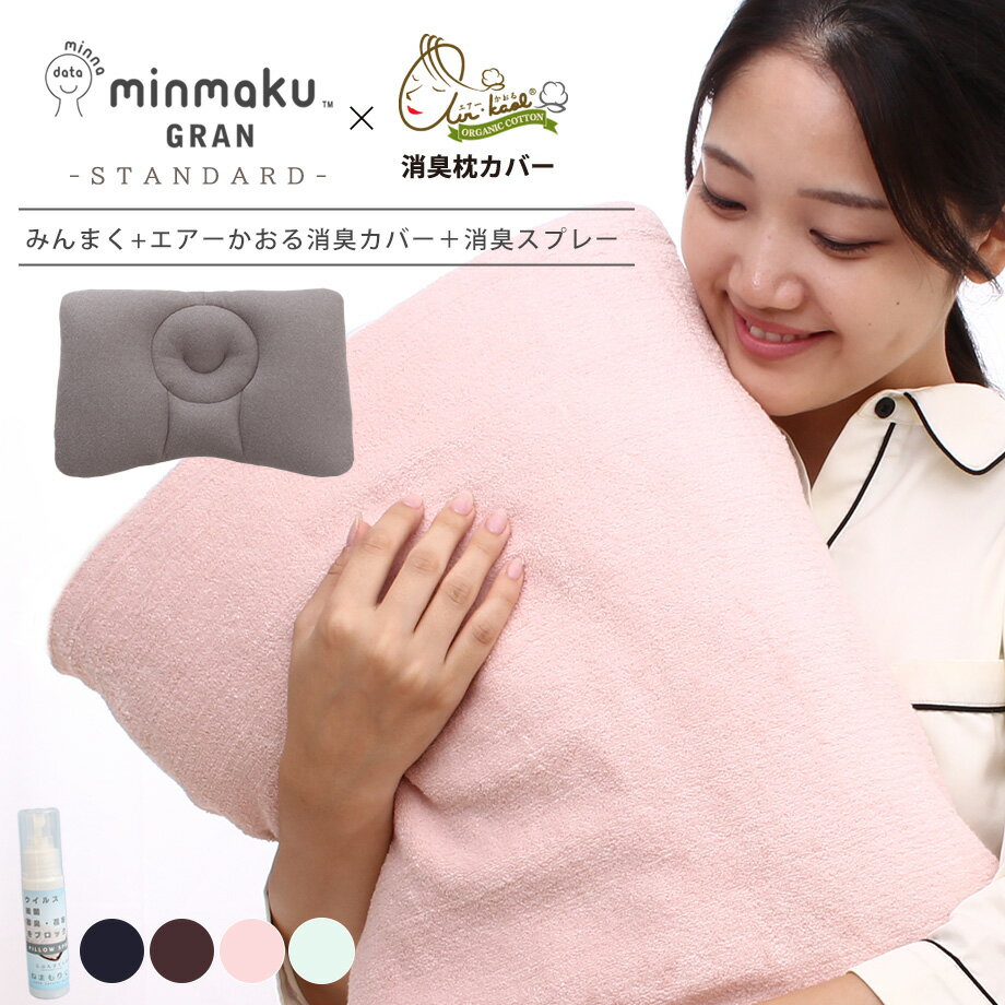 【8/20 24H限定価格】枕 肩こり みんまくグラン スタンダード エアーかおる枕カバーセット 43×63cm STANDARD minmaku スタンダード みんなのまくら じぶんまくら 首こり ピロー 頸椎 やわらかめ 固め43×63cm 首 頸椎 首筋 消臭スプレー付き ねまもりくん