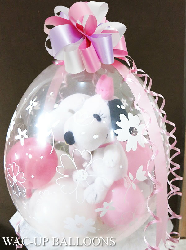 選べるスヌーピーふんわりフレンズ2体入り(ピンク)のバルーンラッピング★