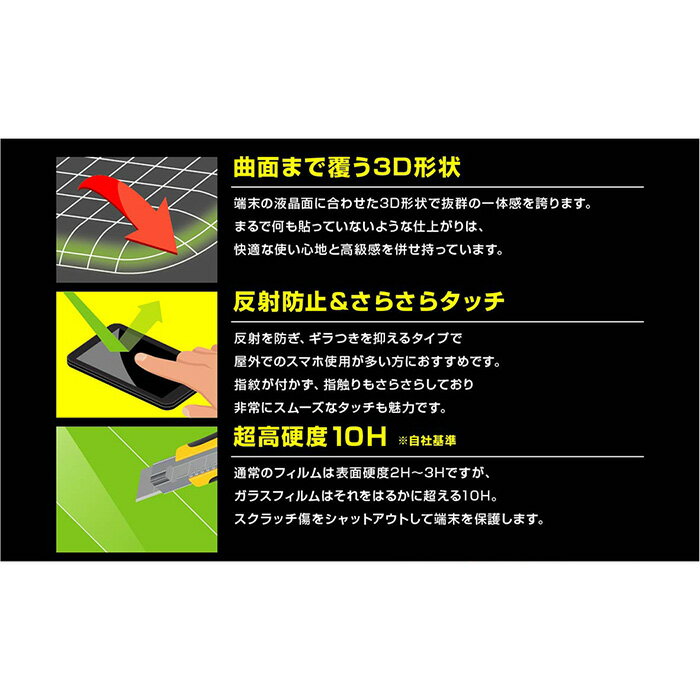 ≪arrows Be4≫ ガラスフィルム 防埃 3D 10H アルミノシリケート 全面保護 反射防止/ブラック 保護フィルム★