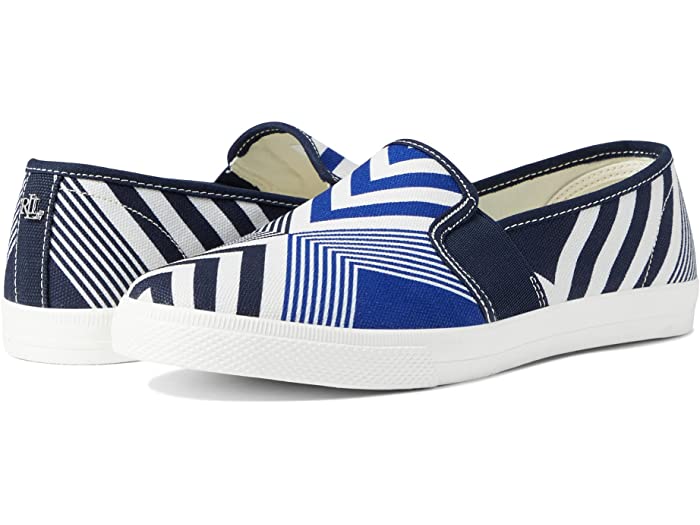 (取寄) ローレン ラルフローレン レディース ジニー ストライプド キャンバス スニーカー LAUREN Ralph Lauren women Jinny Striped Canvas Sneaker Modern Blocked Stripe/Lauren Navy