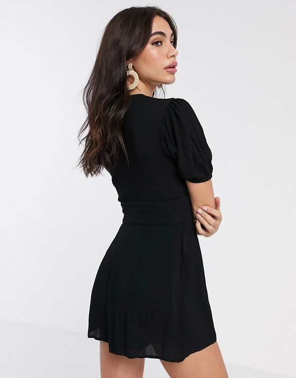 エイソス ASOS asos ASOS DESIGNクリンクルティープレイスーツ、パフスリーブ、ブラック オールインワン レディース 女性 インポートブランド 小さいサイズから大きいサイズまで