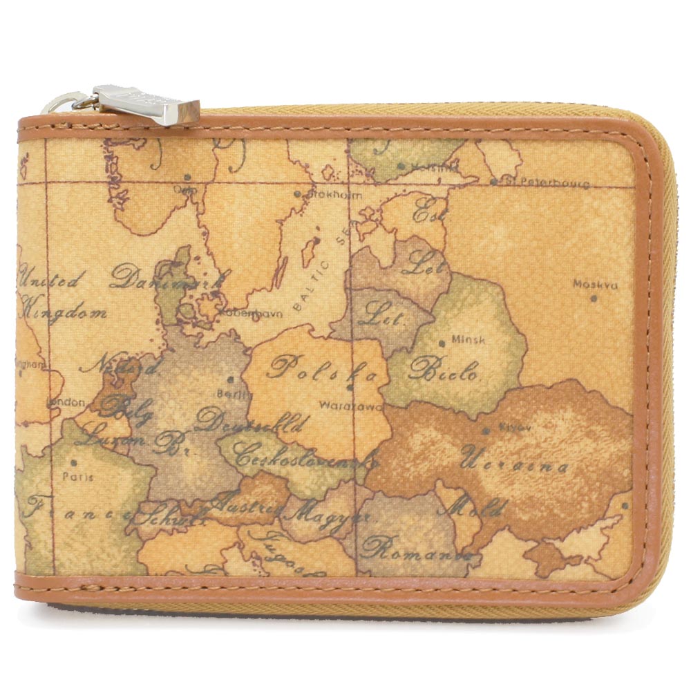 PRIMA CLASSE ≪プリマクラッセ≫ W121 -6000 (#57) ラウンドファスナーふたつ折り財布 世界地図柄 ブラウン PVCx レザー (画像1、2枚目の柄目をお送りします。) 二つ折財布 ジップ財布 【送料無料】【★セール価格】